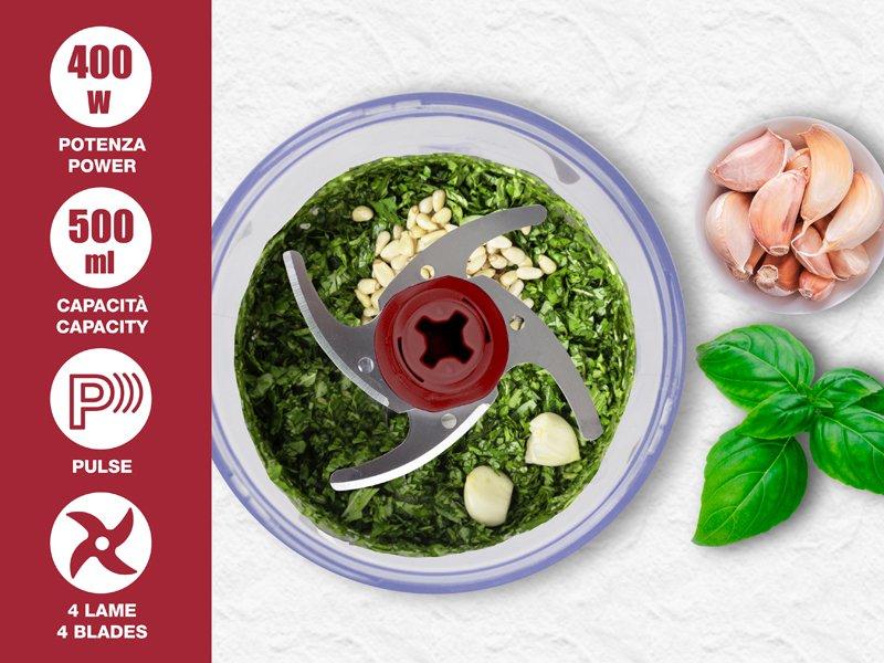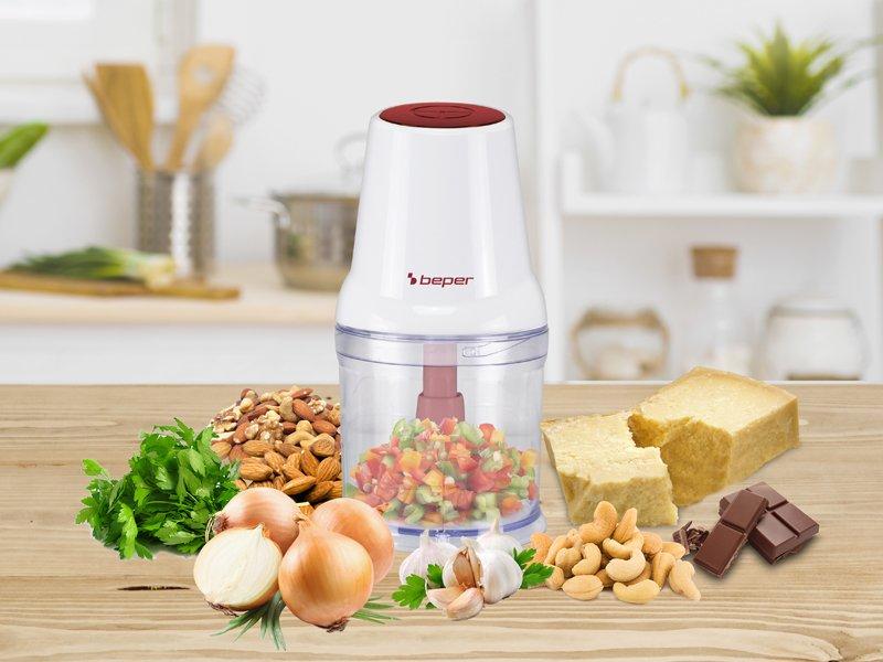 Praktiškas virtuvės kombainas su 500 ml plastikiniu korpusu ir talpa.