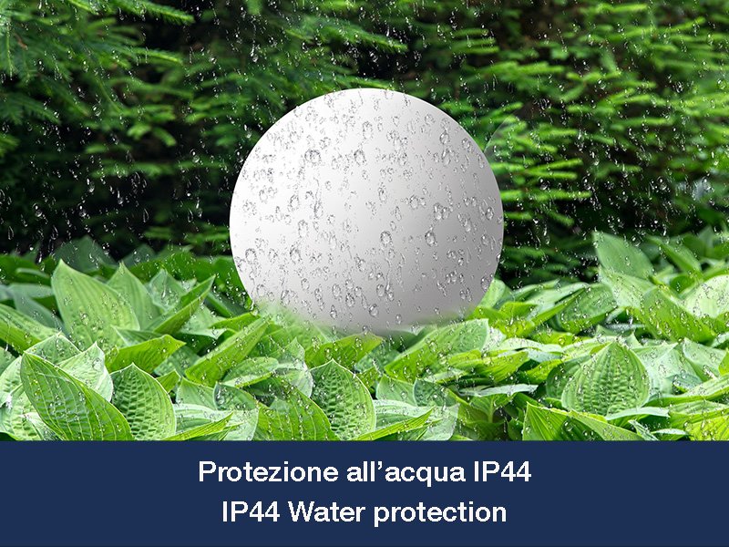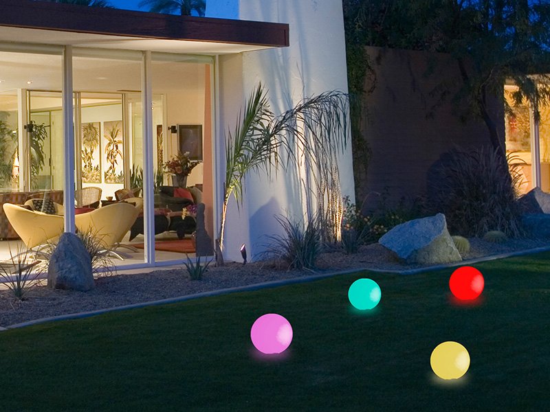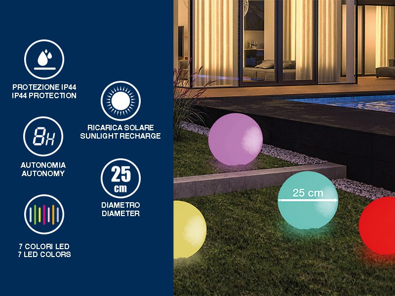 Saulės energija varomas rutulio formos šviestuvas sodui.