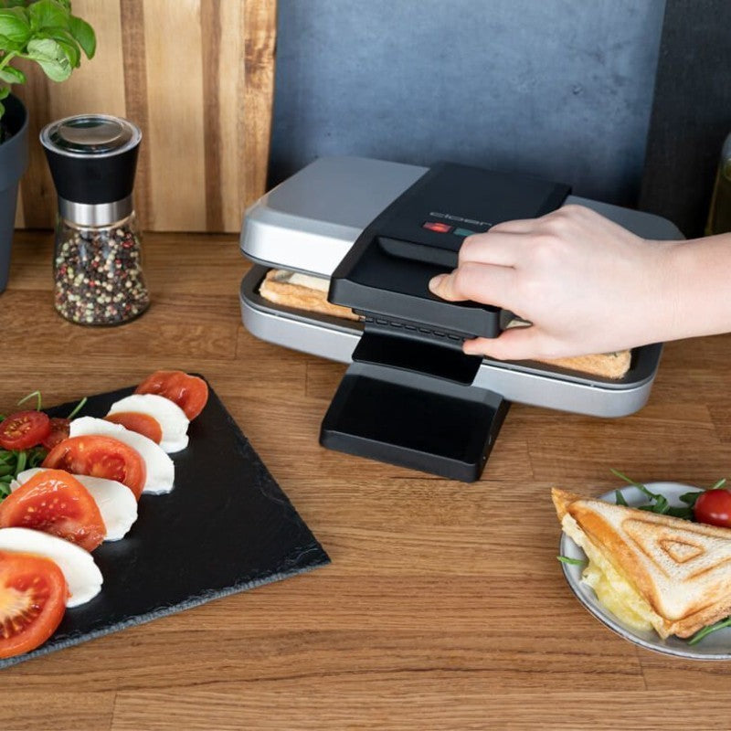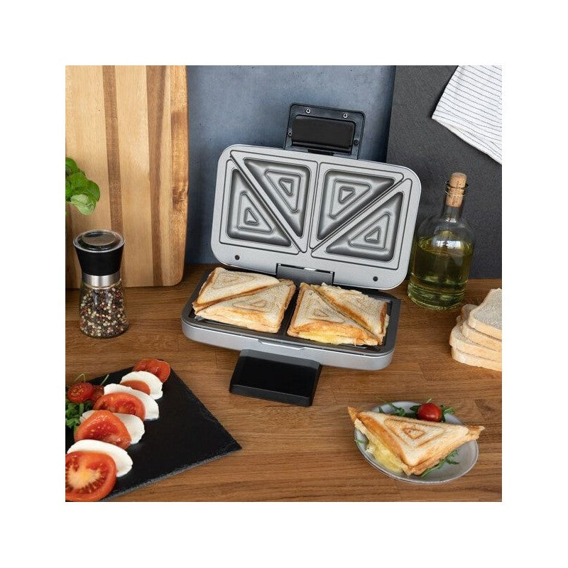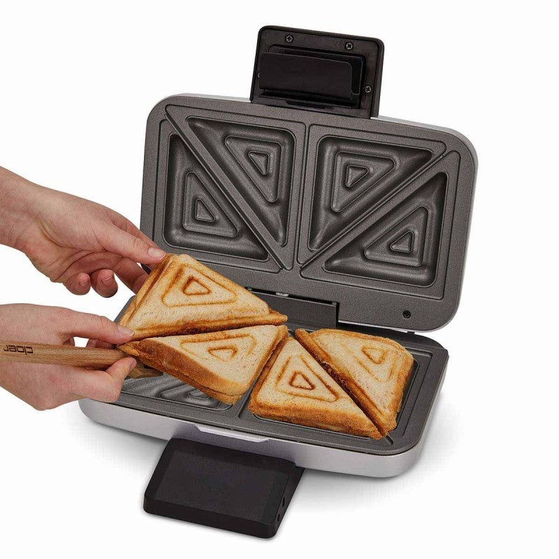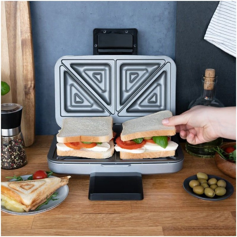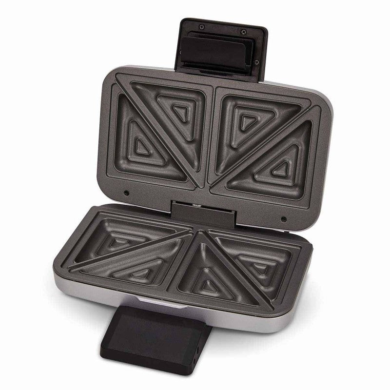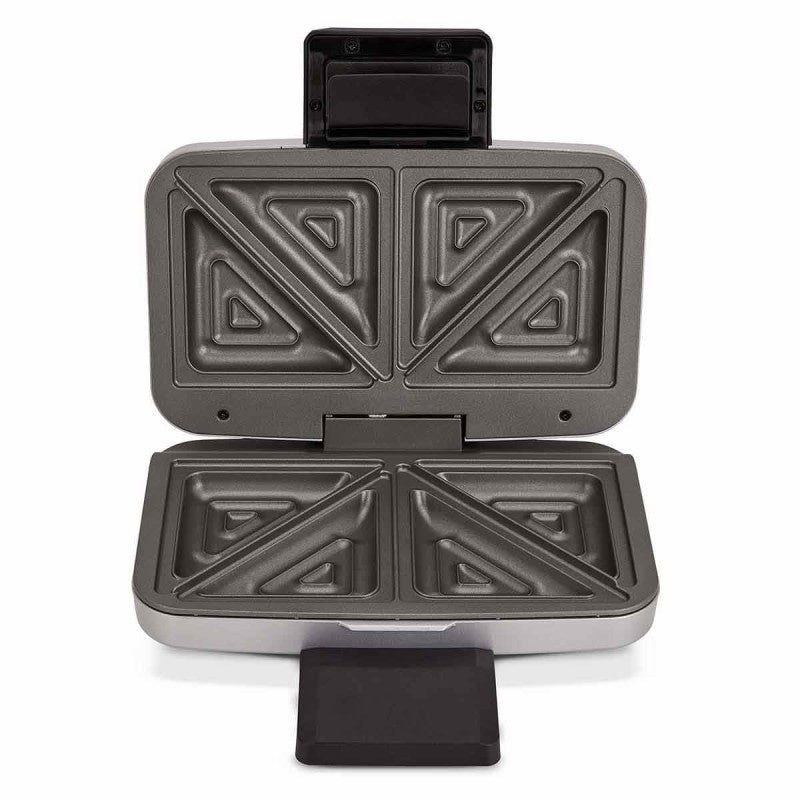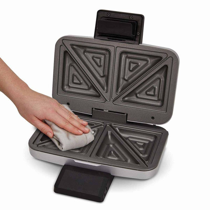 Dėl nelimpančios dangos sumuštinius galima išimti iš prietaiso nepaliekant daug likučių, todėl kepimo plokščių nereikia papildomai tepti riebalais. Trijų pakopų rankenos užraktas užtikrina, kad kepimo metu kepimo plokštės būtų tvirtai prispaustos viena prie kitos, o skrebučiai būtų sandariai uždaryti, kad neišbėgtų įdaras.