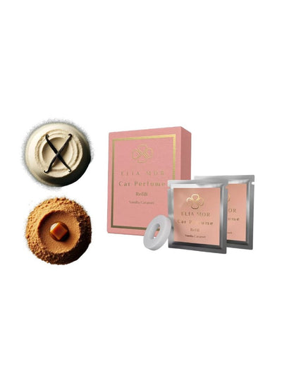ELIA MOR automobilio kvapas + 2 vnt kvapnių plokštelių „Main Set Vanilla Caramel“