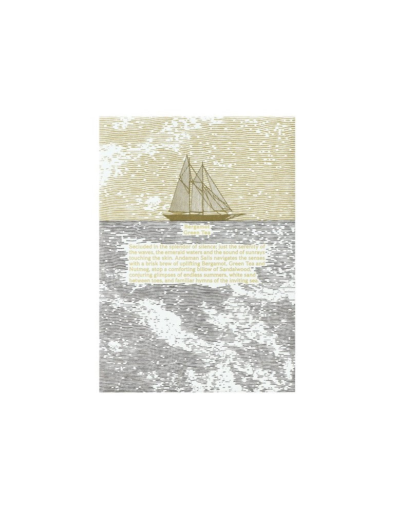 Nuo visų atskirta ramybės oazė, kur bangos kuria ramybę, matosi smaragdiniai vandenys, o saulės spinduliai bučiuoja odą. „Andaman Sails“ paliečia jausmus per nuotaiką pakeliančią bergamotę, žaliąją arbatą ir muskato riešutus. Viršutines natas sudaro raminantis santalas, nunešantis į nesibaigiančią vasarą, kur tarp kokų pirštų jauti baltą smėlį ir girdi pažįstamą kviečiančios jūros balsą.