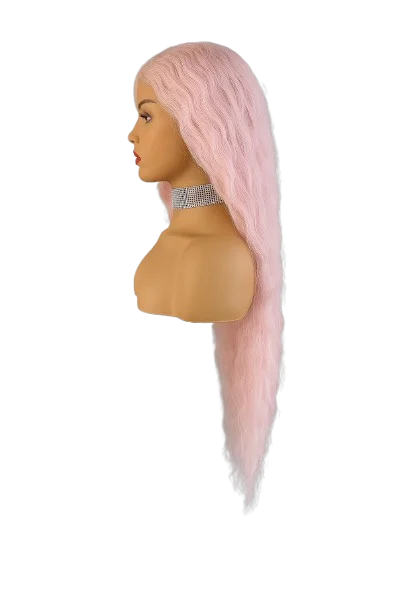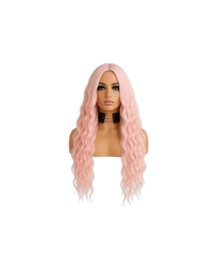 Įspūdingas ilgas rožinis sintetinis perukas, skirtas ryškioms asmenybėms,