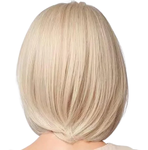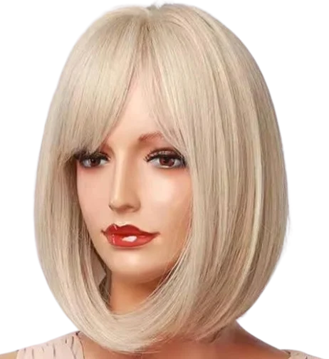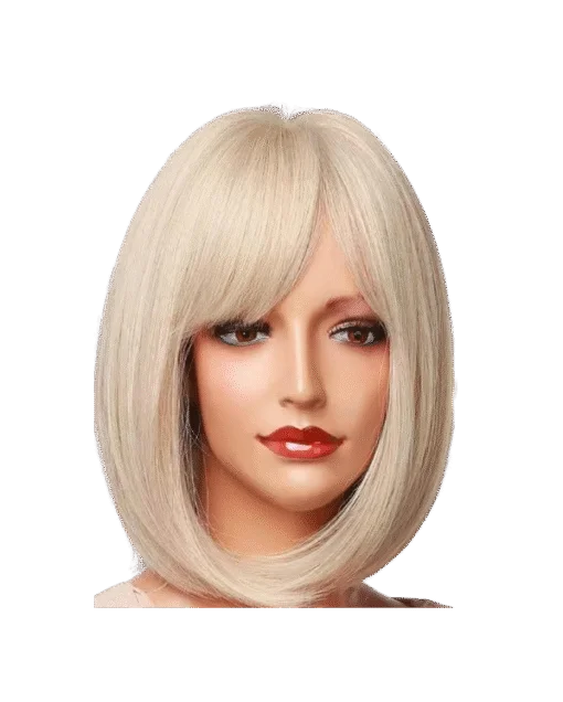 Stilingas, vidutinio ilgio sintetinis perukas su „bob“ tipo kirpimu.