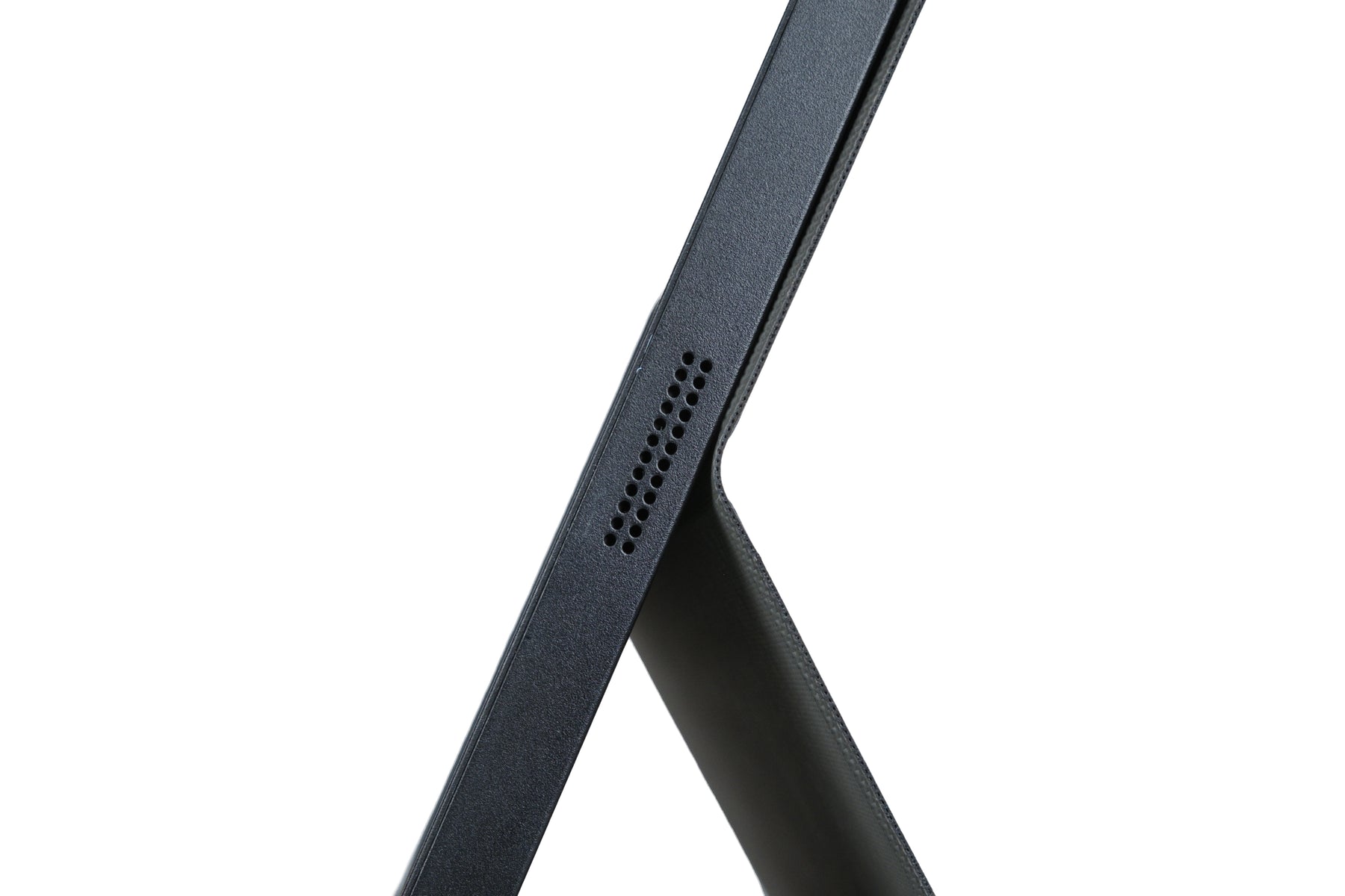 Yra 2 × 1 W garsiakalbiai, ausinių lizdas ir tamsiai pilkas dirbtinės odos dangtelis, kuris taip pat gali būti naudojamas kaip stovas.