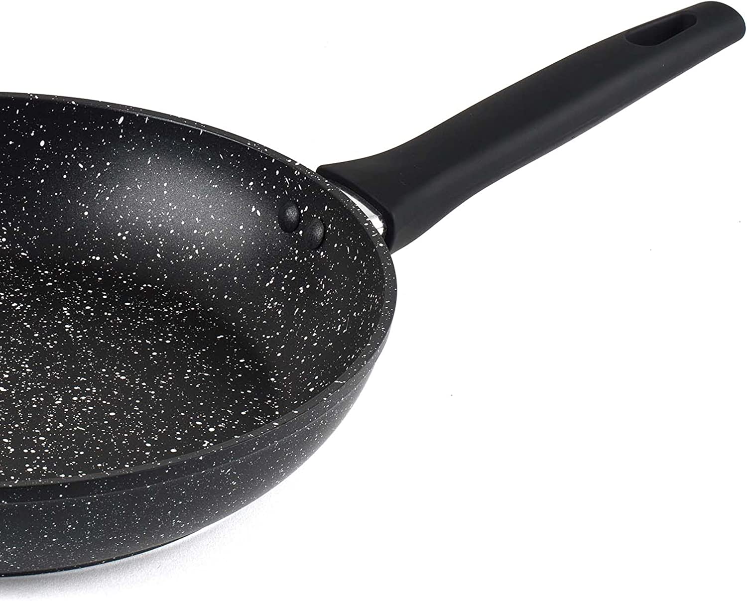 Šios juodos keptuvės, tinkamos visų tipų viryklėms, įskaitant indukcines, turi patrauklią marmurinę apdailą, kuri suteiks stiliaus atspalvį bet kokiems namams.