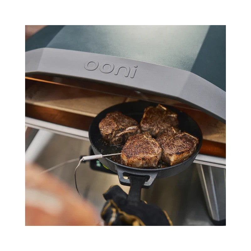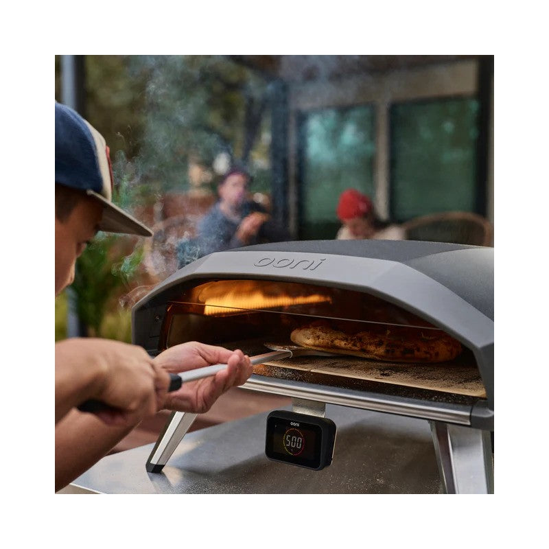 Kepkite išmaniau su „Ooni Connect™“ skaitmeniniu temperatūros centru, palaikančiu „Bluetooth“. Priekyje esantis ekranas realiu laiku rodo aplinkos temperatūrą ir maisto zondo (termometro) rodmenis, o prisijungus prie telefono gausite pranešimus, kurie padės užtikrinti tobulą rezultatą kiekvieną kartą.