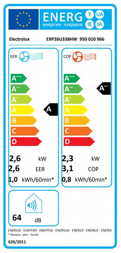 | Energijos vartojimo efektyvumo klasė (vėsinimas): | A |