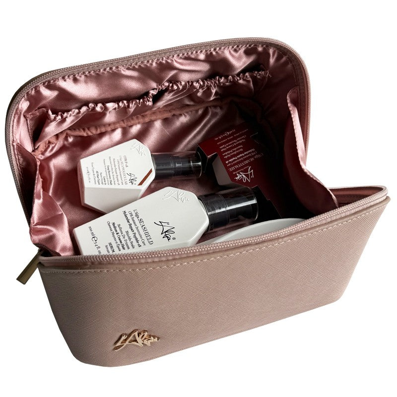L’Alga „CPR P-18 Medium & Coarse Hair Haircare Bag“ plaukų priežiūros priemonių rinkinį sudaro L’Alga „SEAHYDRATE Shampoo“ šampūnas plaukams su peptidais, L’Alga „SEAMOLECULAR Mask“ nenuplaunama kaukė plaukams su peptidais, L’Alga „SEASHIELD Serum“ serumas plaukams su peptidais, L’Alga „SEAREVITALIZE“ ampulė plaukams su peptidais ir kosmetinė.