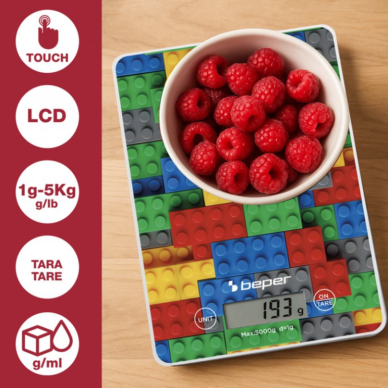 Skaitmeninės virtuvinės svarstyklės „Beper“ pasižymi kompaktišku dizainu ir pažangiomis funkcijomis, leidžiančiomis tiksliai pasverti kietus ir skystus maisto produktus.