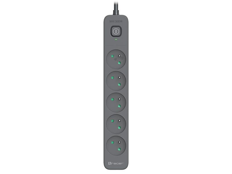 Tracer PowerLine+ maitinimo juostelėje yra 5 lizdai, užtikrinantys stabilų kelių įrenginių maitinimą. Jame yra apsauga nuo viršįtampių, mechaninis blokavimas saugumui užtikrinti ir automatinis grandinės pertraukiklis, apsaugantis nuo perkaitimo.