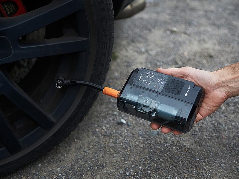 Kompaktiškas, galingas akumuliatorinis kompresorius, puikiai tinkantis pripūsti padangas, sportinius kamuolius ir kt.