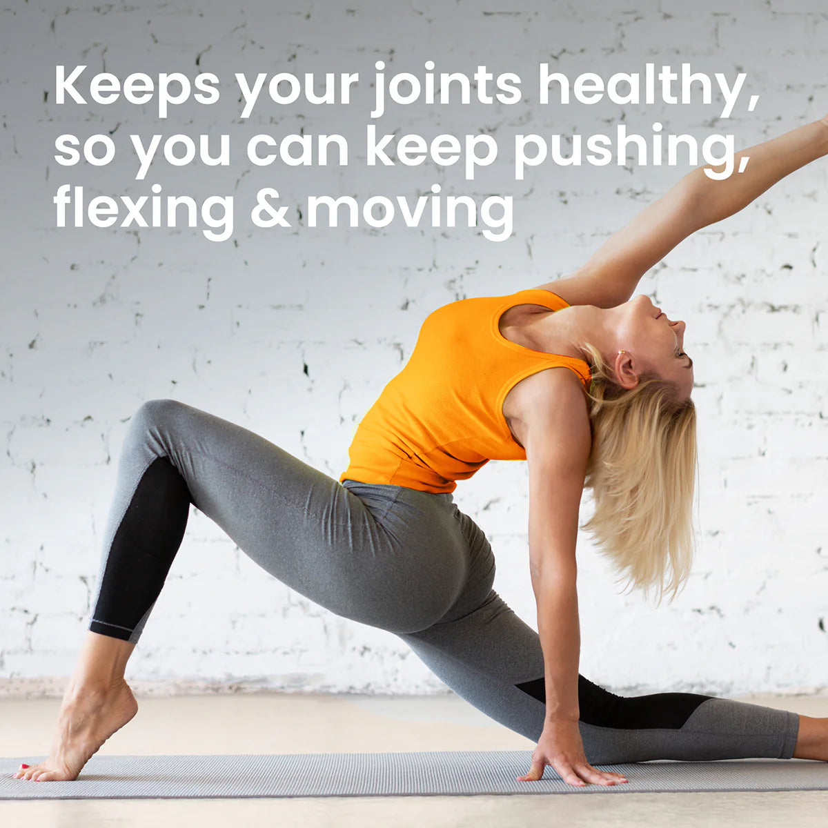 Šis papildas palaiko sveiką sąnarių struktūrą, kremzlių susidarymą, skatina sąnarių judrumą, mažina uždegimą ir apsaugo nuo sąnarius ir raiščius varginančių ligų. Gliukozaminas ir chondroitinas yra labai svarbūs padedant organizmui regeneruoti jungiamąjį audinį ir padeda greičiau išgydyti sąnarių pažeidimus. Šie du junginiai taip pat pagerina kremzlės gebėjimą sugerti smūgius ir padidina bendrą sąnario judrumą išvengiant traumų. Šio maisto papildo sudėtyje taip pat yra MSM (metilsulfonilmetano), kuris pagreitina kolageno baltymų sintezę.