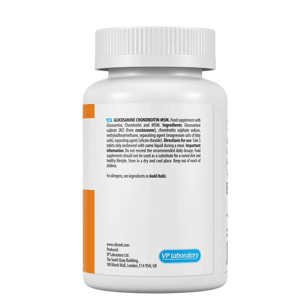 Senėjimo metu organizmas gamina mažiau gliukozamino ir chondroitino; paprastai su maistu gaunamas tik nedidelis MSM kiekis. Todėl reguliarus Ultravit Gliukozamino chondroitino MSM maisto papildo vartojimas gali labai pagerinti sąnarių sveikatą. Šis papildas taip pat labai veiksmingai apsaugo sąnarius nuo sunkaus kėlimo sukeliamos apkrovos.
