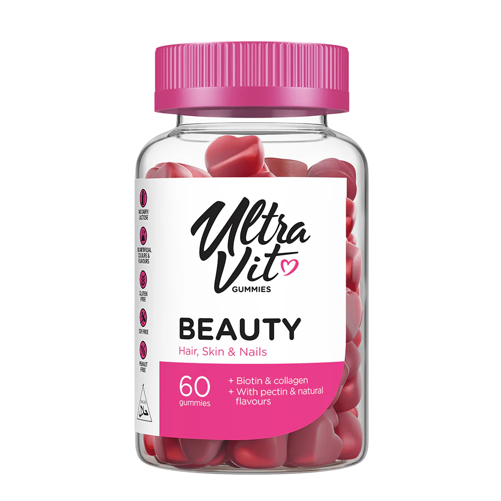 Atskleiskite savo natūralų grožį su UltraVit Beauty Gummies – specialiai sukurtais guminukais, praturtintais biotinu ir kolagenu, skirtais plaukų, odos ir nagų sveikatai palaikyti. Su natūraliais skoniais ir mišrių uogų skoniu, šie guminukai suteikia būtinų maistinių medžiagų, padedančių puoselėti grožį iš vidaus.