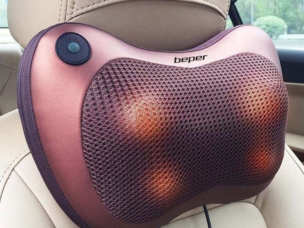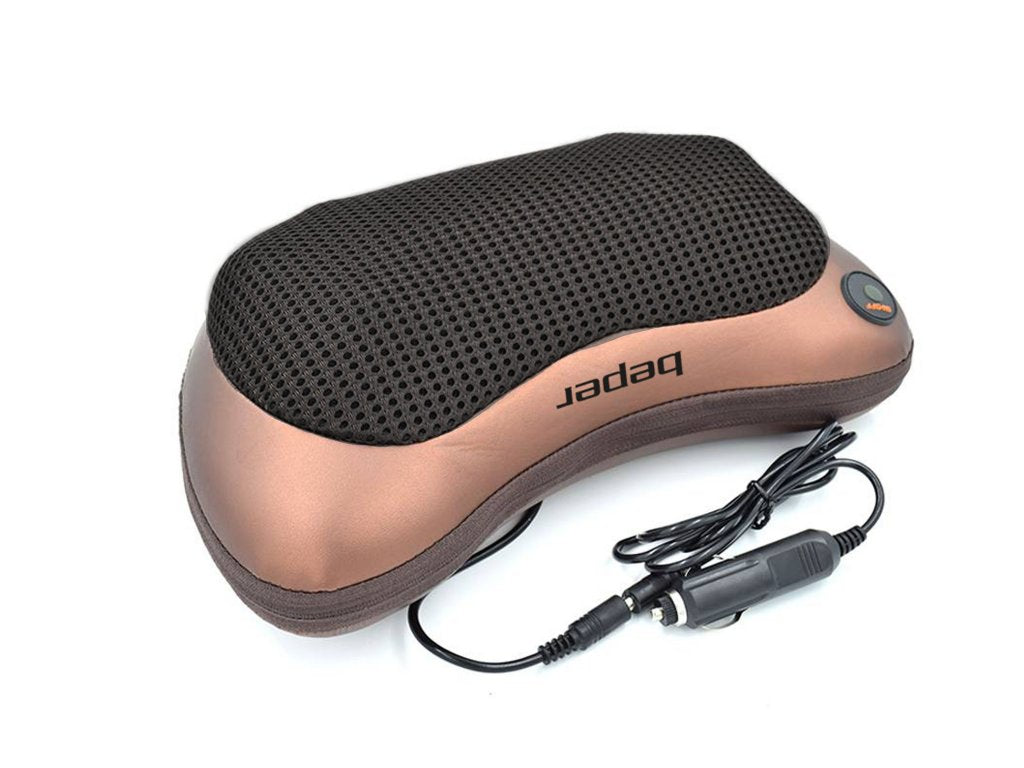 Dual use massage cushion: at home and in the car with adapter. Equipped with 4 massage nodes with alternating clockwise and counterclockwise rotation (controlled by ON/OFF button), promotes blood circulation and muscle relaxation. Automatic shutdown after 15 minutes.