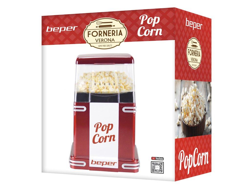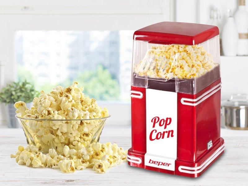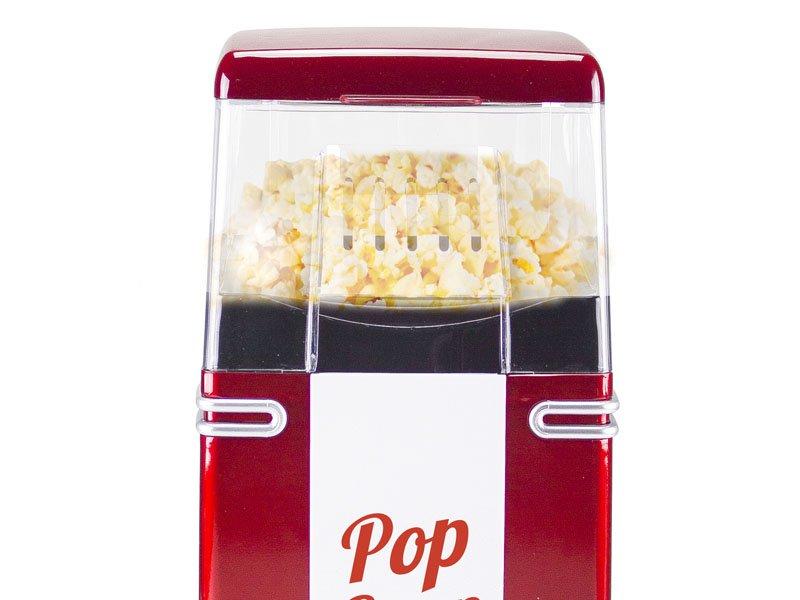 A compact popcorn machine with ABS housing, suitable for home use. Thanks to the hot air circulation, the popcorn is ready in less than three minutes, without the addition of fat. Easy to use by placing the corn in the basket and waiting for it to fall into the bowl. With power button and stable non-slip feet.