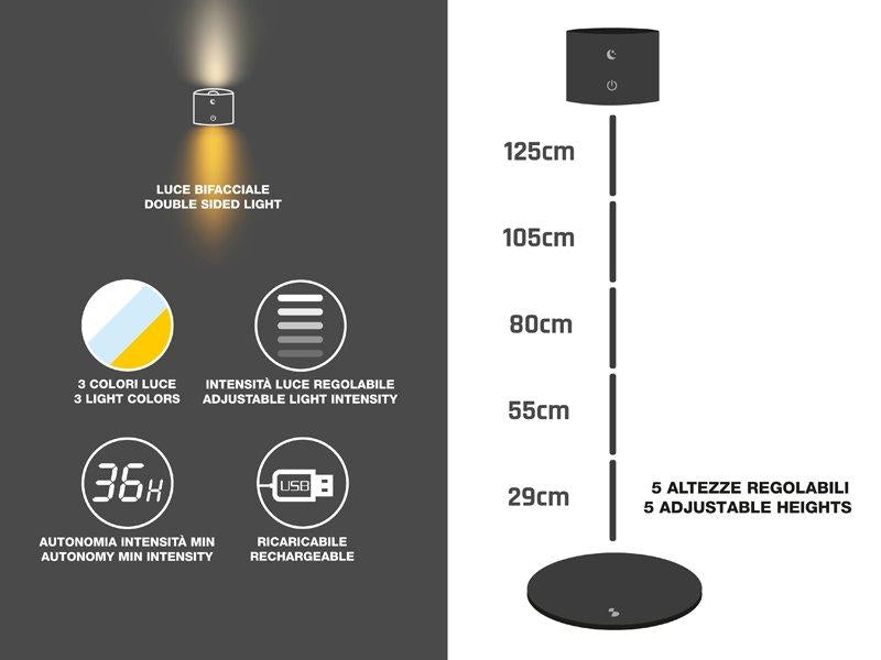 Rechargeable and adjustable height: flexible positioning with 5 height settings
