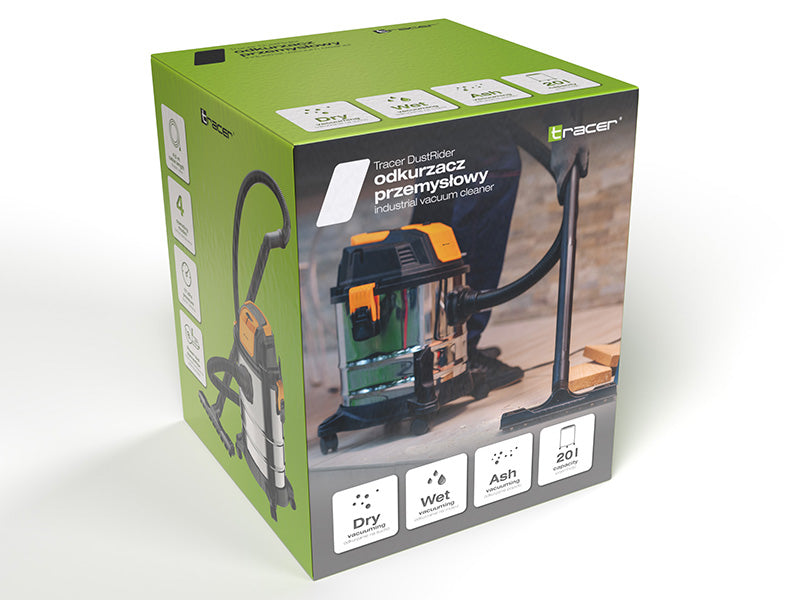 „Tracer DustRider“ – tai pramoninis dulkių siurblys, pasižymintis didele siurbimo galia ir universalumu. Dėl funkcijų, leidžiančių siurbti sausą, šlapią ir pelenų dulkes, jis idealiai tinka dirbtuvėms, garažams ar statybvietėms, kur reikalingi įrankiai sunkesniems valymo darbams atlikti.