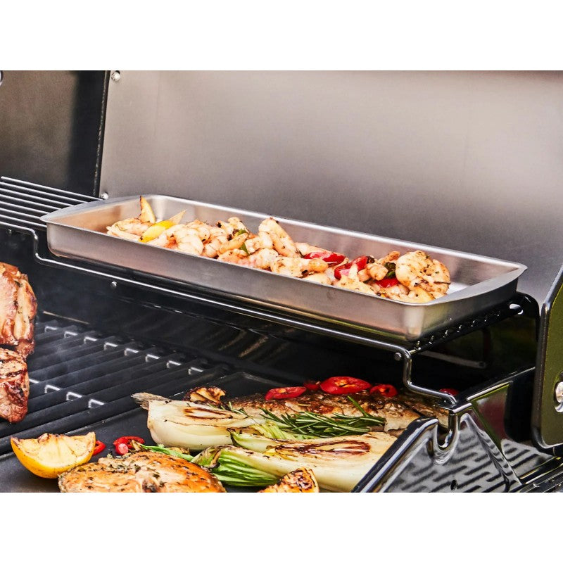 Dovanų pridedama ketaus kepimo plokštuma, ant kurios galėsite kepti blynelius, kiaušinienę ar smulkesnius kepinius bei nerūdijančio plieno krepšelis - puikiai tinkantis ruošti krevetėms bei daržovėms.