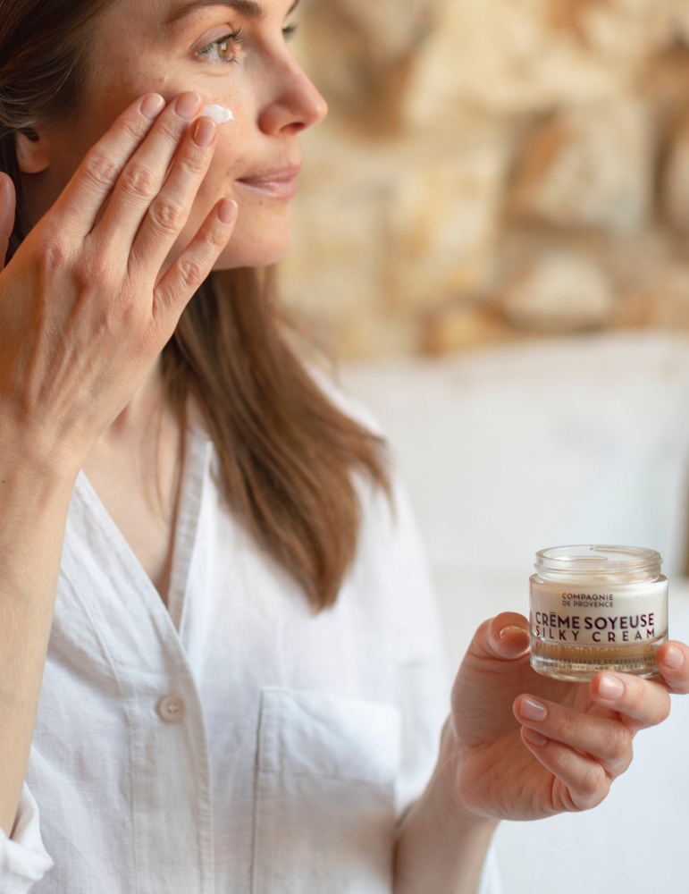 Sudėtis: aqua (Water), Caprylic/Capric Triglyceride, Cetearyl Alcohol, Isopropyl Isostearate, Glycerin, Butyrospermum Parkii (Shea) Butter Extract*, Hydroxyethyl Acrylate/Sodium Acryloyldimethyl Taurate Copolymer, Olea Europaea (Olive) Fruit Oil, Silica, Vitis Vinifera (Grape) Seed Oil, Phytosteryl/Behenyl/Octyldodecyl Lauroyl Glutamate, Prunus Amygdalus Dulcis (Sweet Almond) Oil, Butyrospermum Parkii (Shea Butter), Ceteareth-20, Potassium Sorbate, Citric Acid, Parfum (Fragrance), Sodium Benzoate, Sodium Hyaluronate, Polysorbate 60, Sorbitan Isostearate, Sodium Hydroxide, Tocopherol, Glycine Soja Oil, Helianthus Annuus (Sunflower) Seed OilYpatingai švelnus, medumi ir augaliniais Provanso aliejais praturtintas kremas drėkina, ramina ir padeda apsaugoti odą nuo neigiamų aplinkos veiksnių, suteikdamas odai malonų švelnumo pojūtį.