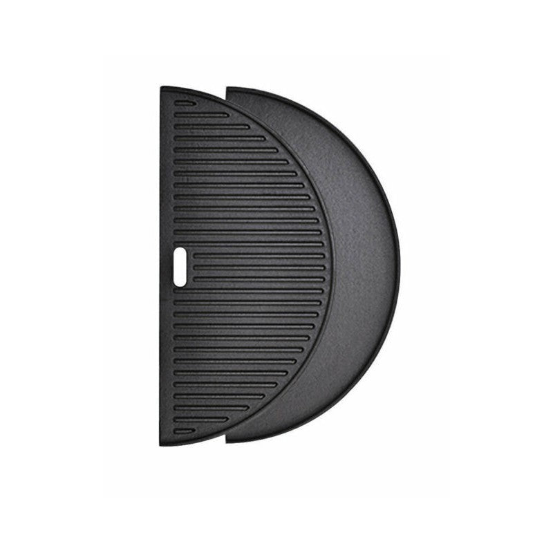 The double-sided cast iron cooking surface will give your food a special flavor. Thanks to the thick metal, the surface of the surface stays hot longer when you place a steak or vegetables on it. The smooth side of the surface will allow you to cook everything from small vegetables to pancakes or scrambled eggs. The ribbed side of the surface is perfect for steaks or burgers. Can be combined with a cast iron grill crescent. This crescent can be used instead of a standard stainless steel grill or integrated into a multifunctional two-zone cooking system. Fits Kamado Big Joe.