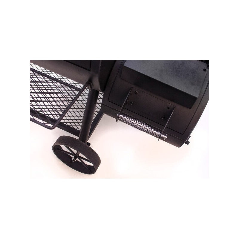 Dėl įmontuotų dviejų ratų, kepsninę paprasta transportuoti.