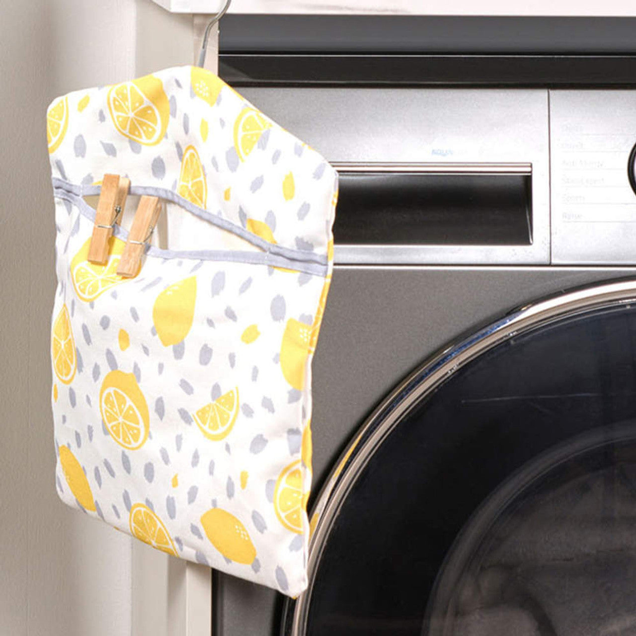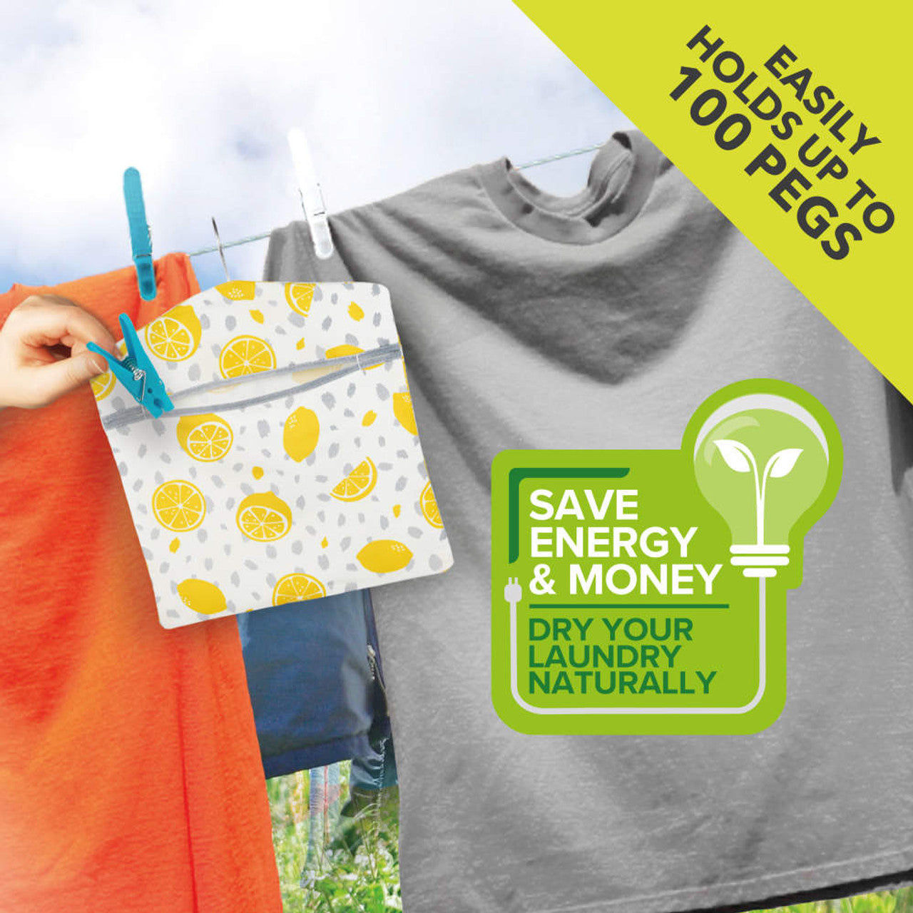 Sutvarkykite savo skalbinių kabinimui skirtus kabliukus naudodami spalvingą citrinų rašto „Beldray“ kabliukų maišelį, kurio matmenys – kompaktiški – 33 x 30 cm.
