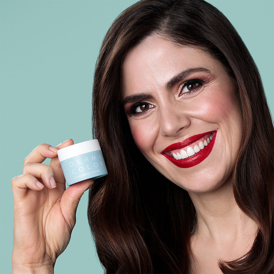 Dermacolor Camouflage kreminis makiažo pagrindas yra ypač pigmentuota makiažo priemonė, skirta paslėpti ir koreguoti odos netolygumus, spalvinius odos pakitimus ir tatuiruotes. Tinkama naudoti veidui ir kaklui. Teisingai naudojama Dermacolor Camouflage kreminė priemonė leidžia veiksmingai ir lengvai ištaisyti įvairius odos pakitimus. Kai ši priemonė užfiksuota naudojant Dermacolor fiksuojančią birią pudrą ir Dermacolor fiksuojamąjį purškiamą fiksatorių, ji tampa atspari vandeniui ir apsaugo odą nuo kenksmingų UV spindulių. Dermacolor Camouflage priemonė gali išlikti net ir tokiomis ekstremaliomis sąlygomis kaip plaukimas, karštis ir fizinis krūvis. Yra gausus atspalvių asortimentas, kurie yra tarpusavyje maišomi, o teisingai pritaikius, makiažas suteikia natūralumo.