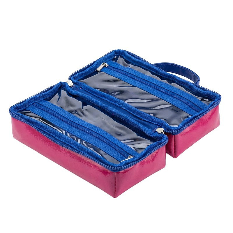OSOM Professional „Cosmetic Bag“ – išraiškingo dizaino ir apgalvoto funkcionalumo derinys, sukurtas patogiam grožio ar higienos priemonių laikymui. Kontrastinė mėlynos ir ryškiai rožinės spalvų kombinacija suteikia modernumo, o glotni, lengvai valoma medžiaga užtikrina ilgaamžiškumą ir patrauklią išvaizdą.