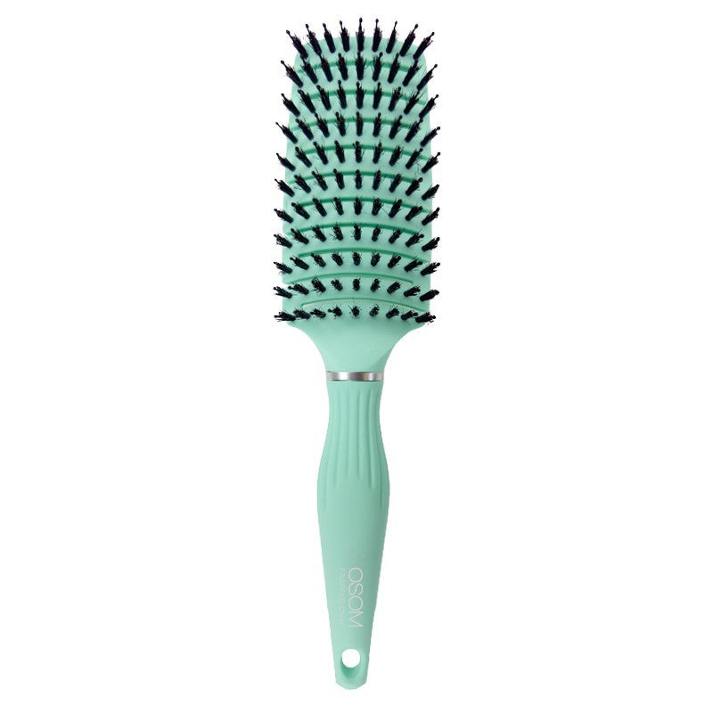 OSOM Professional „Flexible Hair Brush With Boar and Nylon Bristles“ šepetys plaukams su natūralių šerno ir nailono šerelių deriniu, sukurtas efektyviam plaukų šukavimui ir formavimui. Šerno šereliai padeda tolygiai paskirstyti natūralų galvos odos sebumą per visą plaukų ilgį, suteikdami plaukams glotnumo ir natūralaus žvilgesio, o nailono šereliai lengvai slysta plaukais ir užtikrina švelnų iššukavimą. Ergonomiška rankena su neslystančia guminės dangos („rubber finish“) danga suteikia patogų ir stabilų sukibimą net intensyvaus darbo metu.