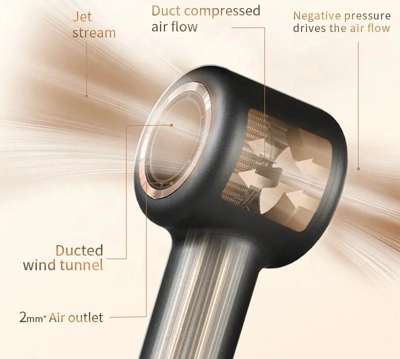 Turbojet Sistema. Tai inovatoriška oro pūtimo sistema, kuri generuoja didžiulį oro srautą iš apačios į viršų. Taip plaukams tiekiamas oras yra itin koncentruotas, tačiau tuo tarpu ir itin švelnus, nežalojantis plaukų.