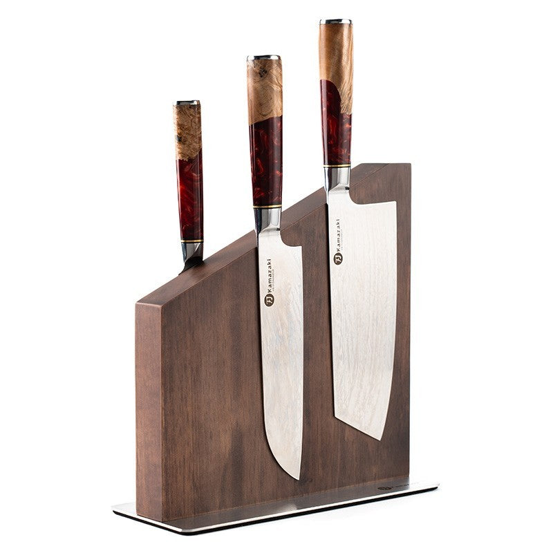 Stiprūs integruoti magnetai patikimai laiko peilius savo vietoje, neleidžia jiems slysti ar nukristi.