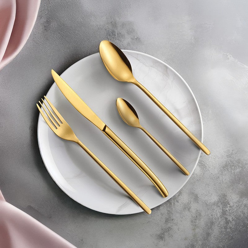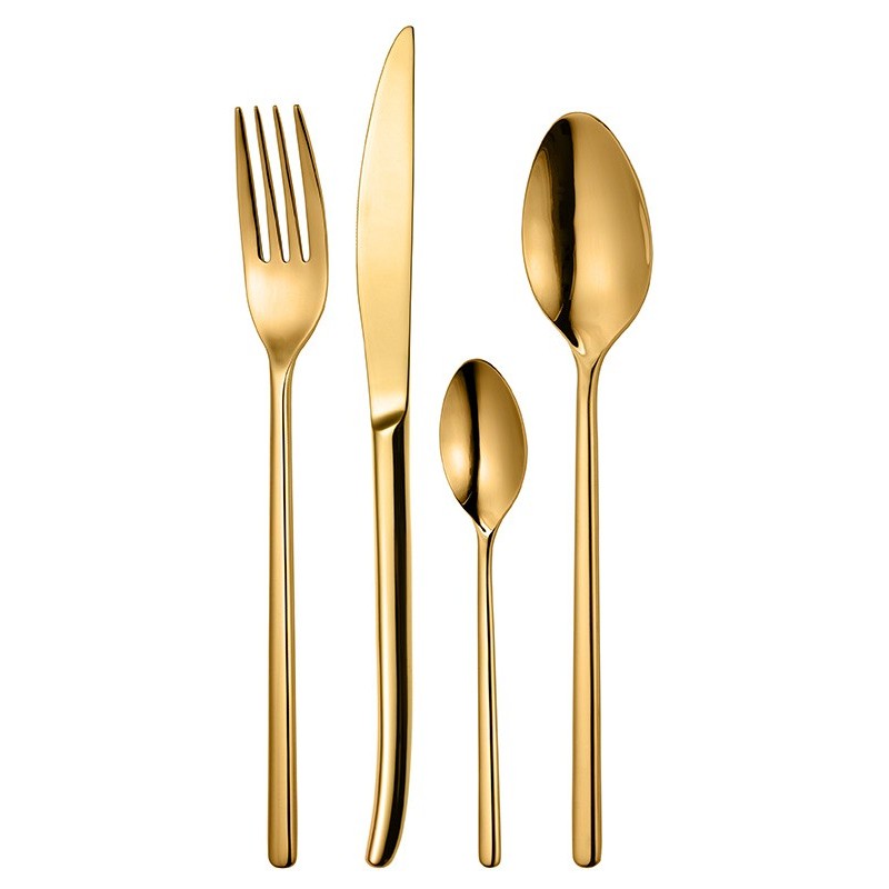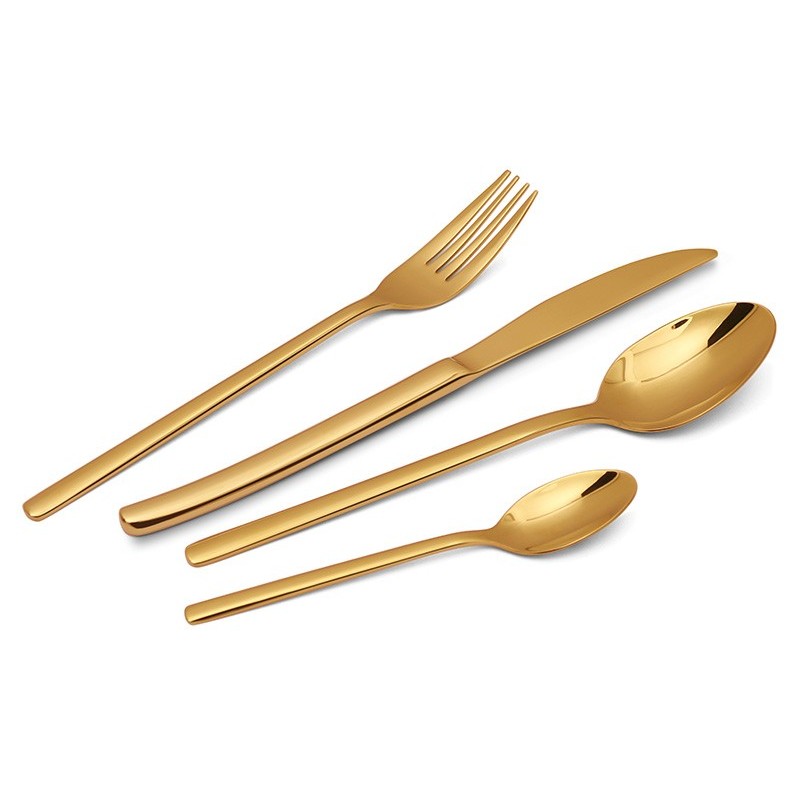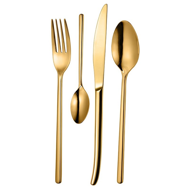 „Zyle“ 24 dalių nerūdijančio plieno stalo įrankių rinkinys – tai elegancijos ir funkcionalumo derinys jūsų kasdieniam ar šventiniam stalo serviravimui. Pagaminti iš aukštos kokybės 18/0 nerūdijančio plieno, šie įrankiai pasižymi ypatingu tvirtumu, atsparumu dėvėjimuisi ir ilgaamžiškumu. Moderni, veidrodinės aukso spalvos danga suteikia stalui prabangos ir išskirtinumo, todėl rinkinys puikiai dera tiek prie minimalistinių, tiek prie klasikinių interjerų.