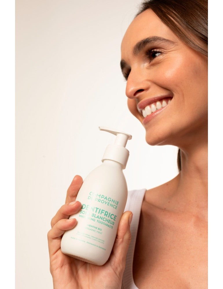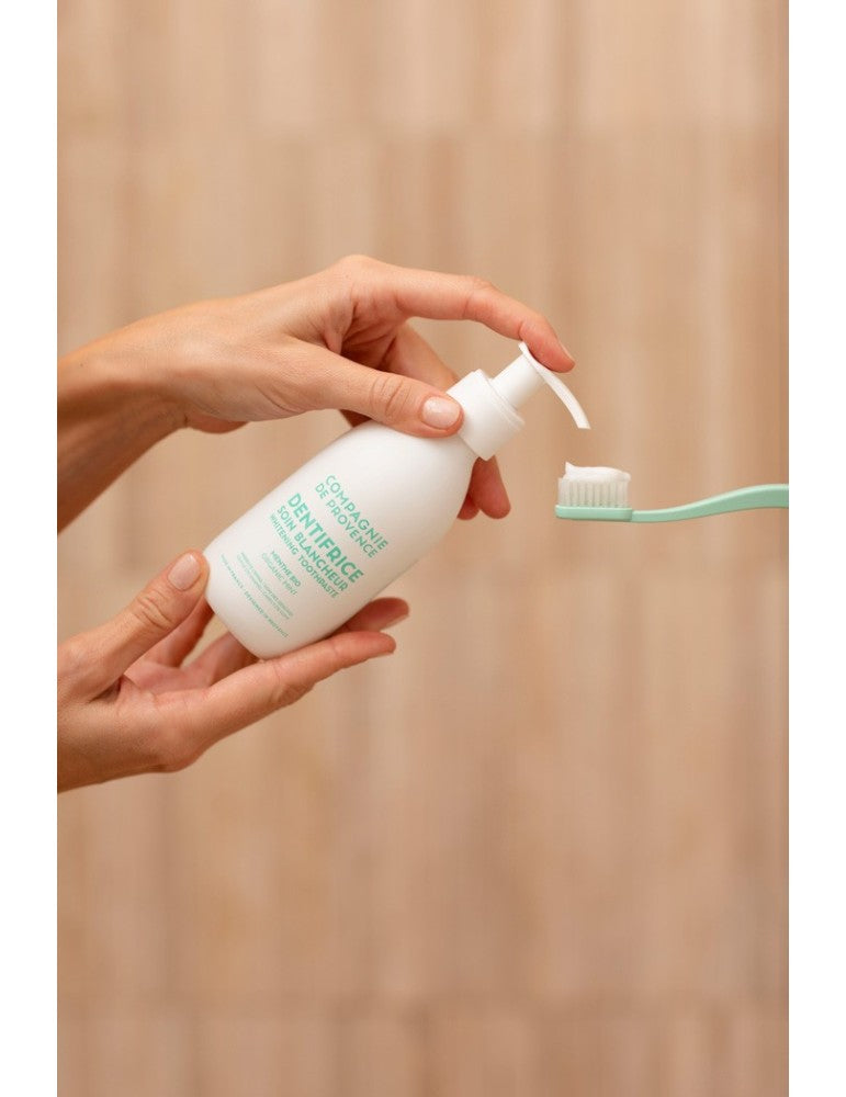 Mentha Piperita Oil* – Pipirmėčių eterinis aliejus, kilęs iš Provanso iš ekologinės žemdirbystės. Pasižymi intensyviomis gaivinančiomis savybėmis ir padeda atgaivinti burnos kvapą, kad burnos pojūtis būtų švarus. Pripažintas dėl savo antibakterinių savybių, jis taip pat padeda sumažinti bakterijų, atsakingų už dantų apnašas, augimą.