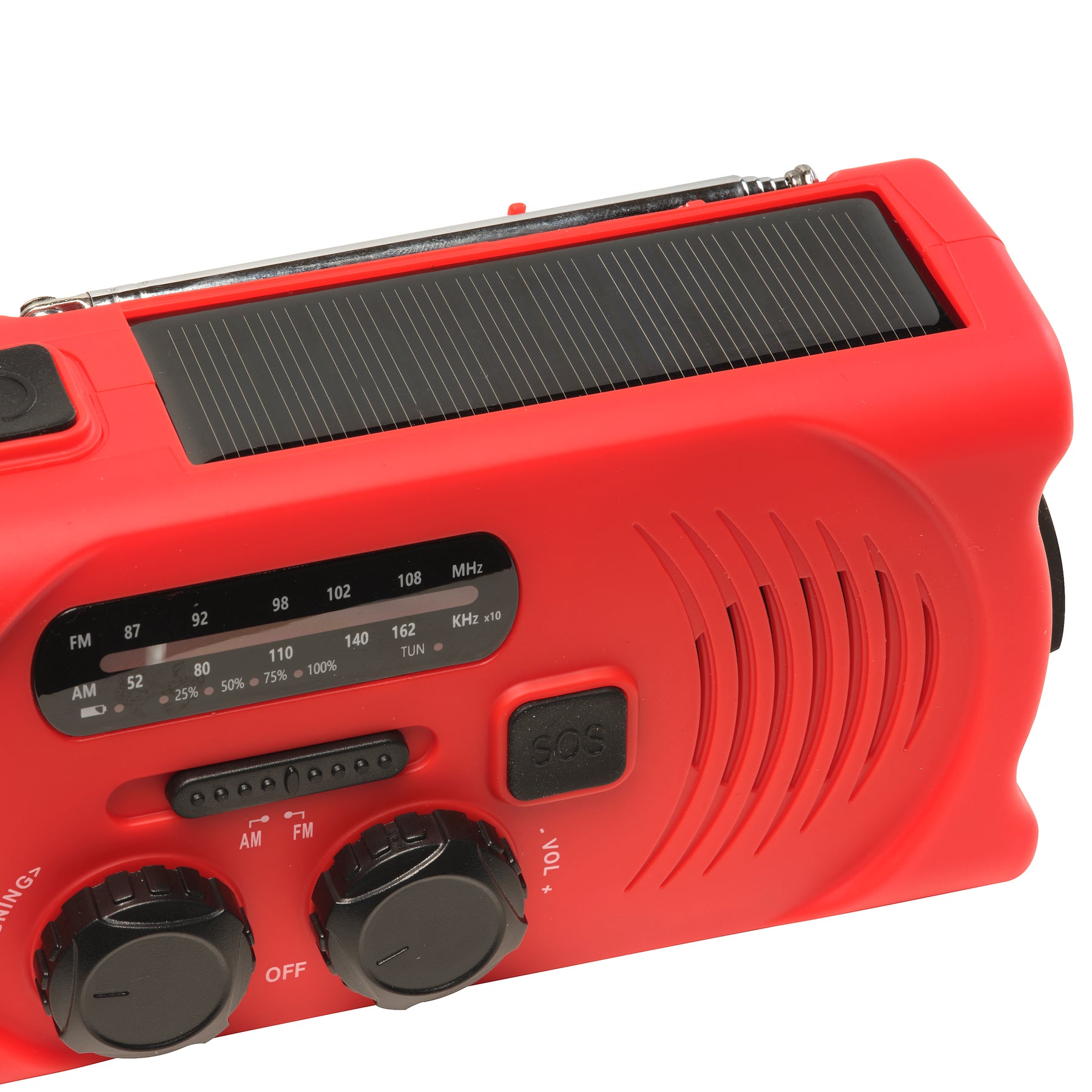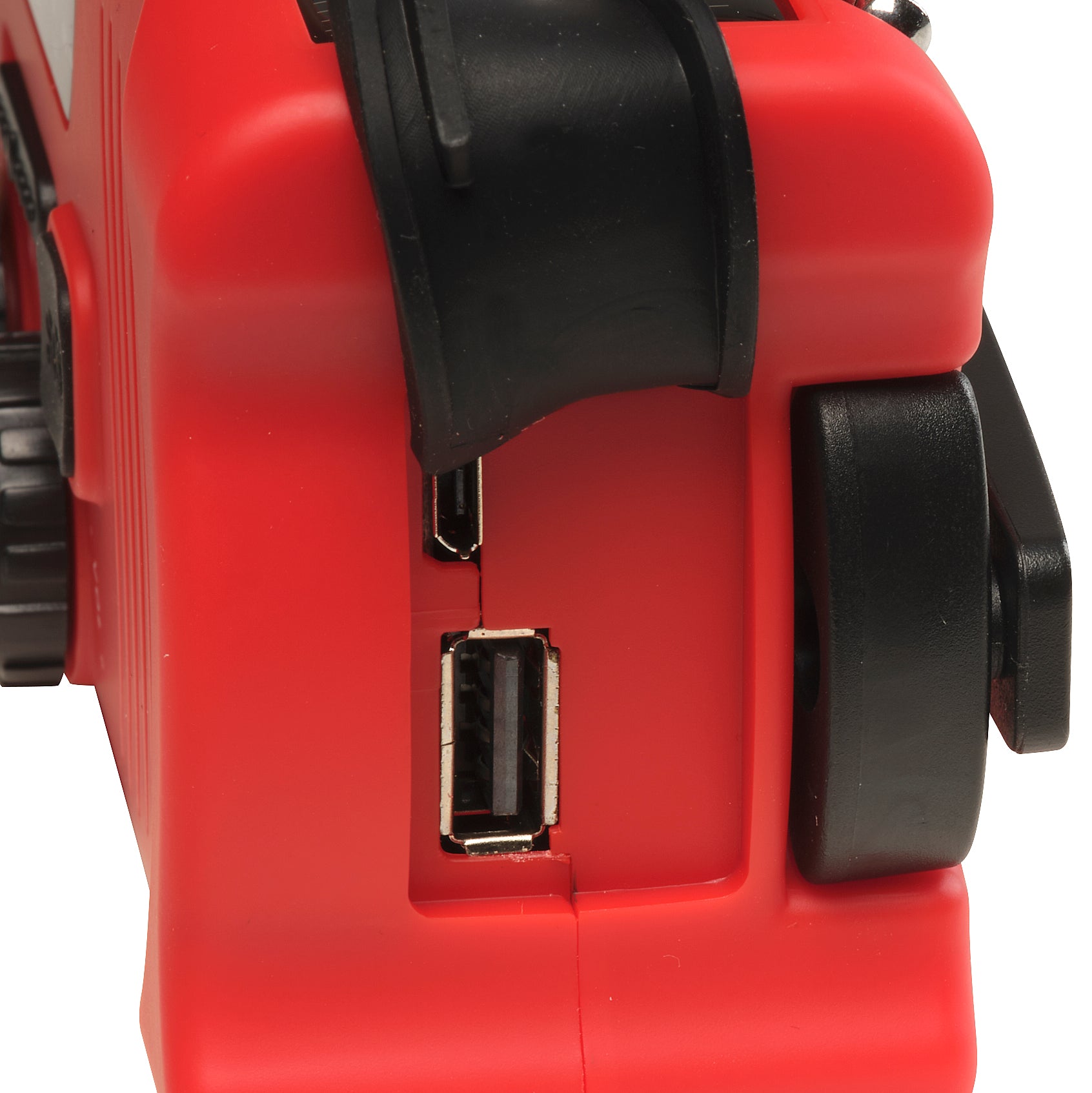 The radio works for 12-15 hours fully charged, the flashlight for 10-12 hours