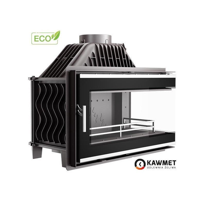 The gate damper regulates the draft force in the fireplace chimney. The deflector increases the thermal efficiency of the fireplace by extending the smoke path to the chimney. An additional heat-resistant plate protects the body of the fireplace insert from wear and tear. The decorative grill prevents firewood from falling out of the fireplace insert. The fireplace is equipped with high-temperature-resistant glass. A convenient ash drawer allows you to quickly remove ashes without opening the fireplace door, formed during combustion. Adjusting the air supply to the ashtray. Densely arranged radiation plates increase the area of heat transfer into the room. The fireplace has a door with a wide flat observation glass through which you can enjoy a real live fire. Specifications: Chimney diameter: 18cm Maximum firewood length: 55cm Ashtray material: cast iron Power: 13.5 kW Heating area: 135m² Weight: 129kg Dimensions: 80.5 x 44.7 x 45 ,3cmGlass dimensions: 76 x 40.5 x 0.4cmSide glass dimensions: 40.8 x 40.5 x 0.4cmEfficiency: 80.4%