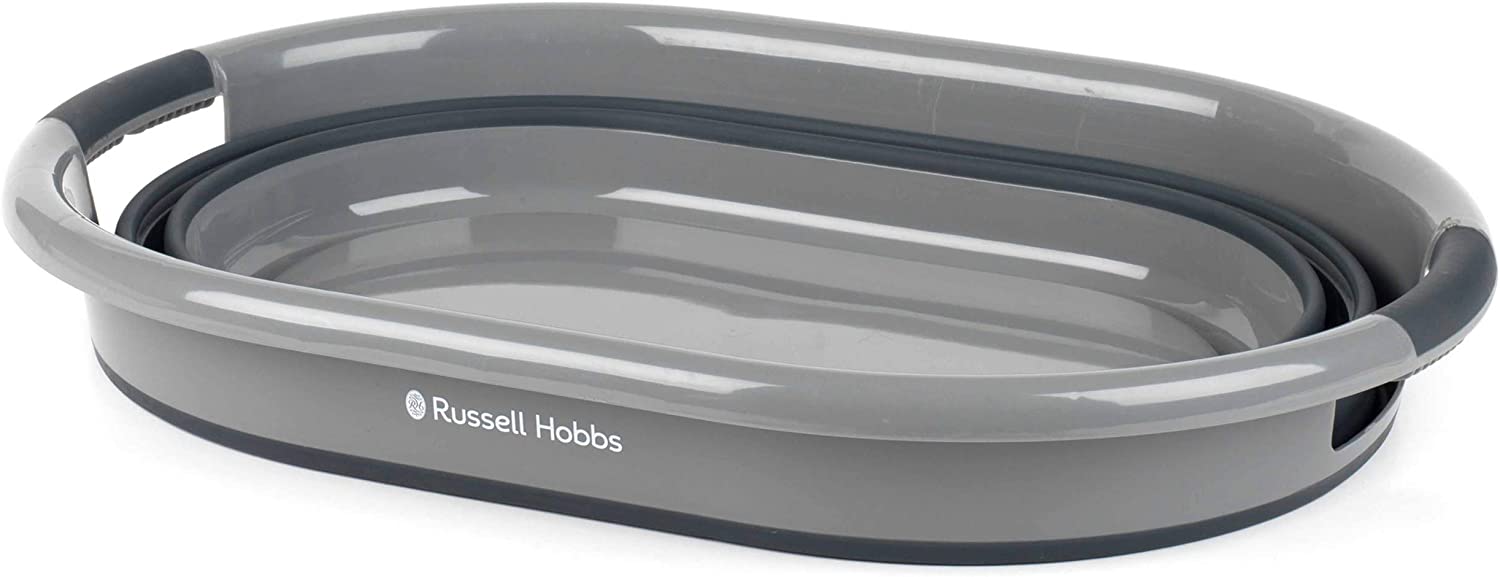 Sturdy and wonderfully compact, this plastic Russell Hobbs basket can be folded for storage between uses.