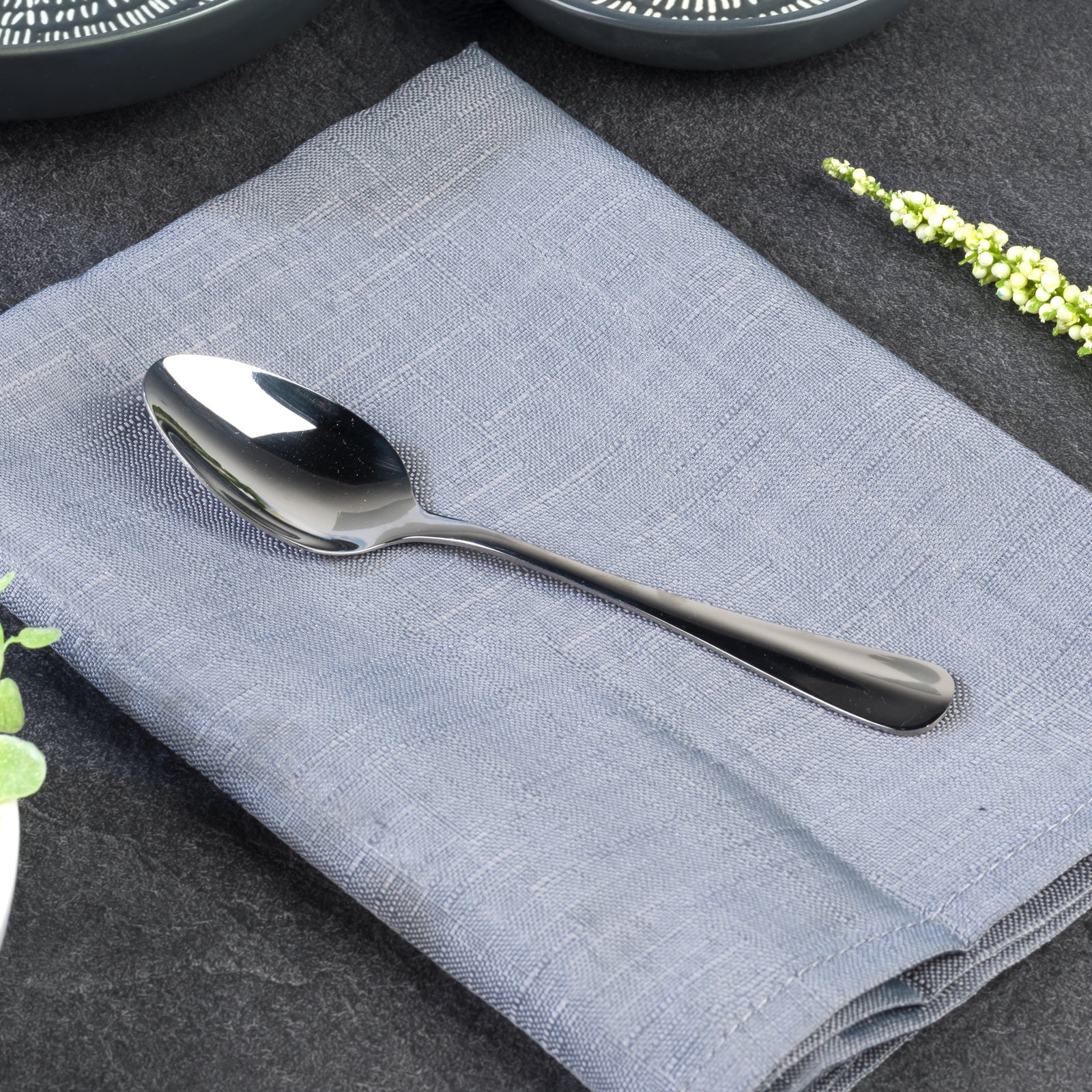 | Rinkinyje | 4 kepsnio peiliai (4,5 mm), 4 peiliai (4,5 mm), 4 šakutės (2,3 mm), 4 desertiniai šaukštai (2,3 mm), 4 arbatiniai šaukšteliai (1,9 mm) |