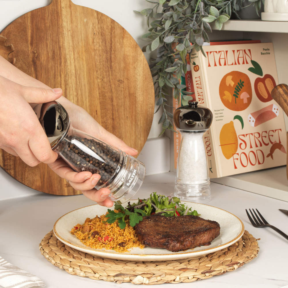 Reguliuojamas malimas: pritaikykite prieskonių tekstūrą kiekvienam patiekalui! Su reguliuojamu malimu galite reguliuoti malimo rupumą – nuo smulkaus iki stambaus.