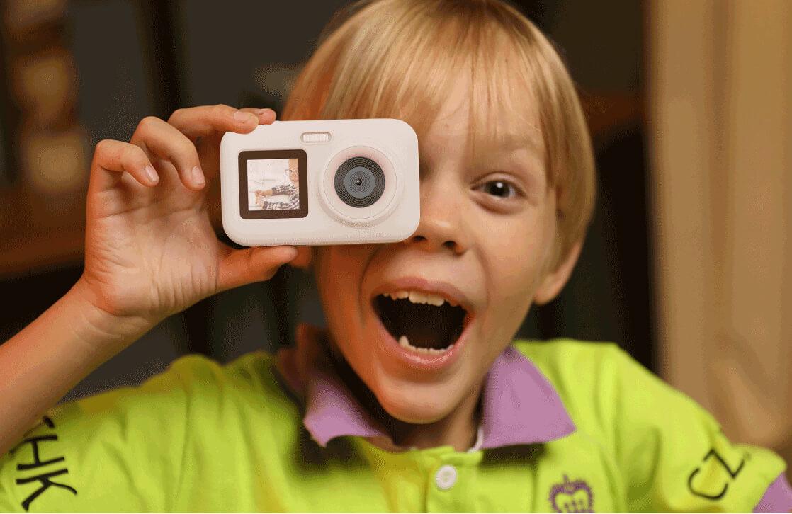 Rinkinyje yra Kamera, baterija, vandeniui atsparus dėklas, laikikliai, laidai