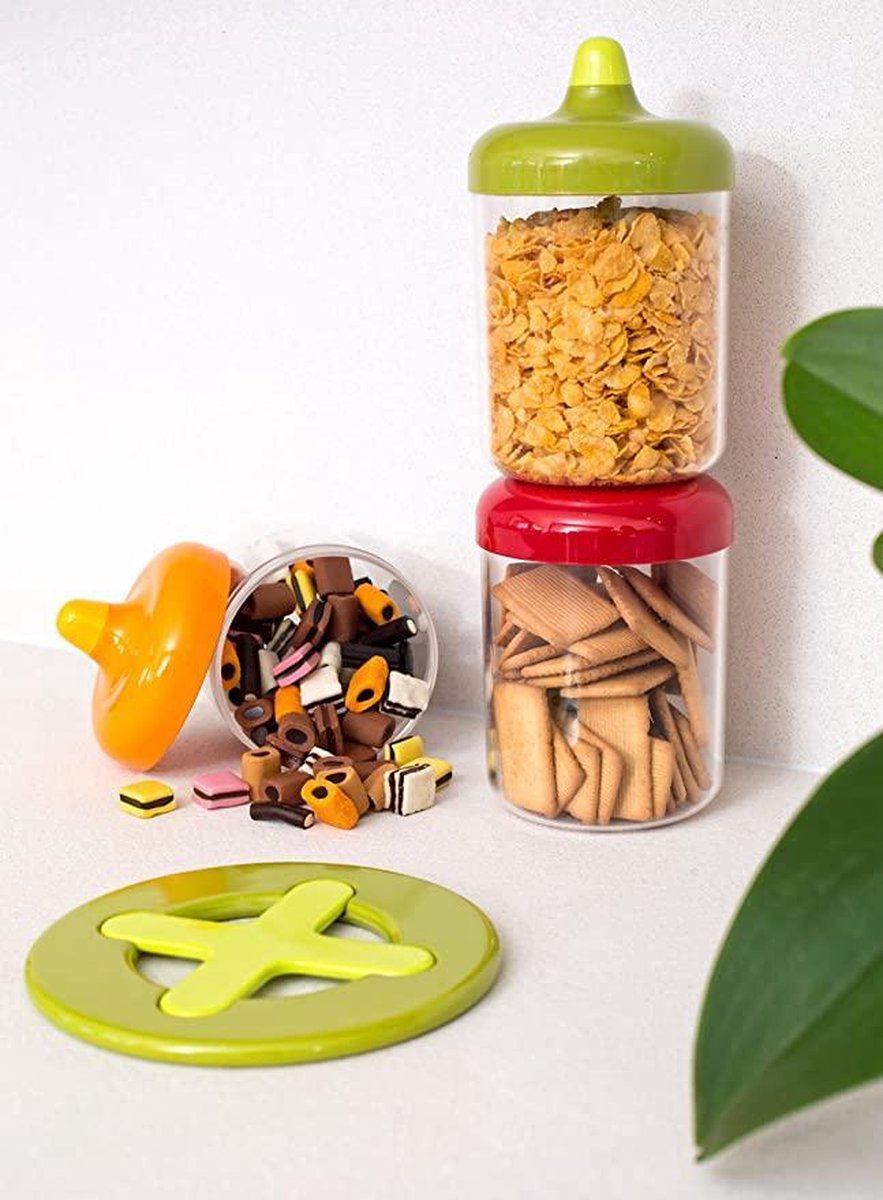 Practical, economical storage container, 0.75 l, with hermetic red lid for a tidy and functional kitchen.