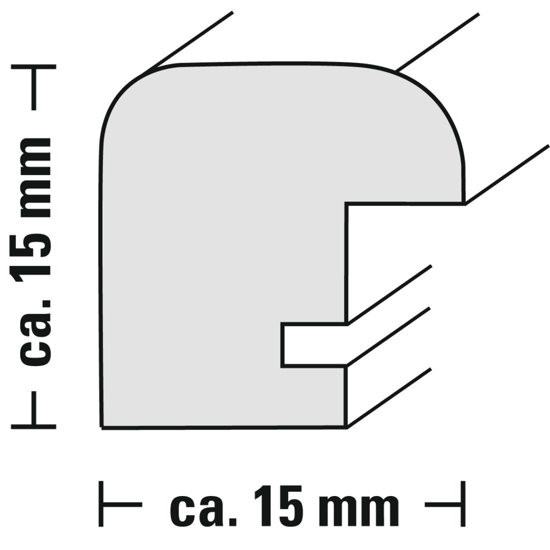 13 x 2 x 2 cm (rėmo dydis), tinka 10 x 15 cm nuotraukoms