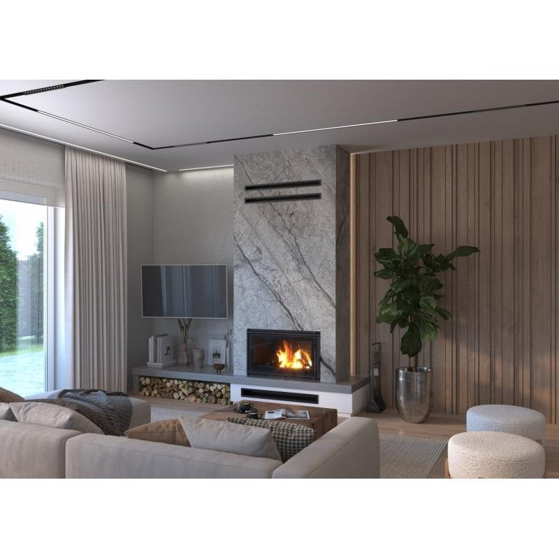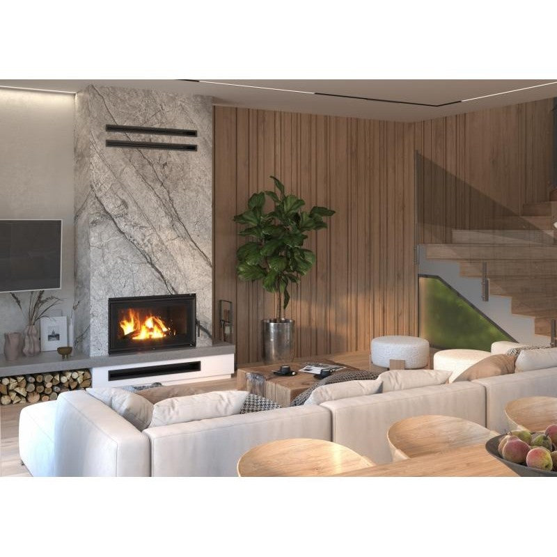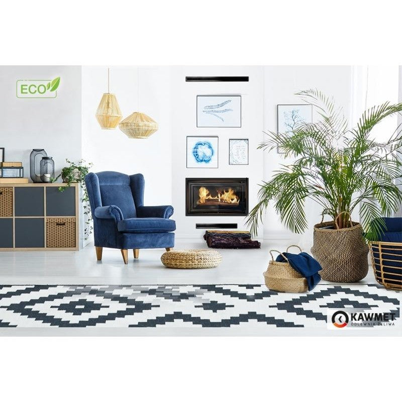 Vartų sklendė reguliuoja traukos jėgą židinio kamine. Deflektorius padidina židinio šiluminį efektyvumą, pailgindamas dūmų kelią į kaminą. Papildoma karščiui atspari plokštė, apsauganti židinio įdėklo korpusą nuo susidėvėjimo.Dekoratyvinės grotelės neleidžia malkoms iškristi iš židinio įdėklo. Židinyje sumontuotas aukštai temperatūrai atsparus stiklas. Patogus pelenų stalčius, leidžia greitai išimti pelenus, neatidarant židinio durelių, susidariusius degimo metu. Oro tiekimo reguliavimas pelenų indu. Tankiai išdėstyti radiacinės plokštelės padidina šilumos perdavimo į patalpą plotą. Židinys turi duris su plačiu plokščiu stebėjimo stiklu, pro kurį galėsite mėgautis tikra gyva ugnimi.Specifikacijos:Dūmtraukio skersmuo: 20cmDidžiausias malkos ilgis: 70cmPeleninės medžiaga: ketusGalia: 16,3 kWŠildomas plotas: 163m²Svoris: 195kgMatmenys: 87,6 x 51,8 x 50cmStiklo matmenys: 80 x 39,8 x 0,4cmNašumas: 80,4%