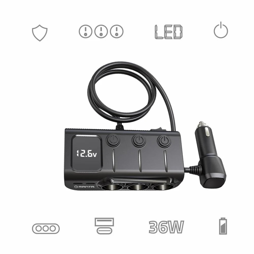 Papildoma informacija: PD 36W, QC 3.0, LED ekranas, atskiri jungikliai