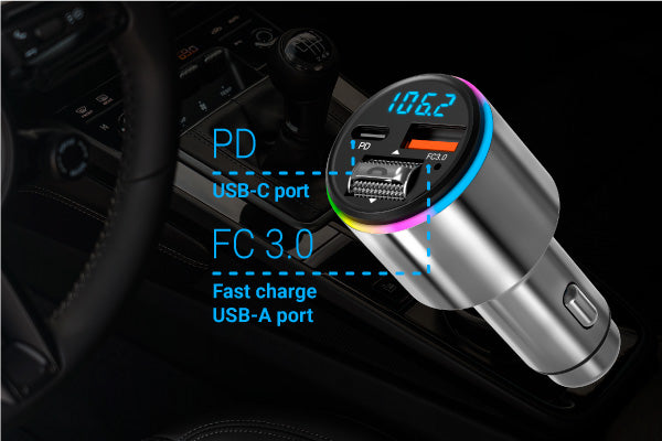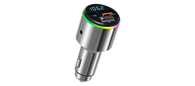 FM siųstuvas ir „Bluetooth“ ryšys: per „Bluetooth“ arba FM radiją transliuokite muziką arba skambučius į savo automobilio garso sistemą.