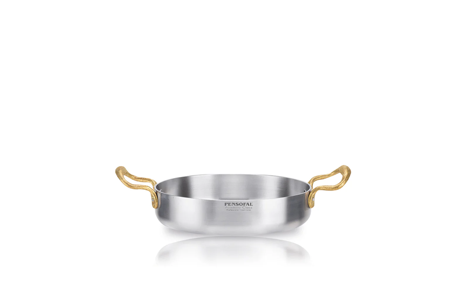 Lieta žalvario rankena leidžia žaisti patogiai įsikibti. Jo banguota forma, mūsų dizainerių darbo rezultatas, suteikia keptuvės dizainui unikalios elegancijos.