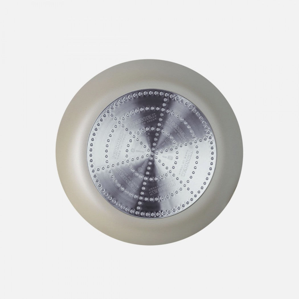 Aliuminio plytelė, aukštas storis, nesandarus vidinis skaidrus sluoksnis, sustiprintas deimantų milteliais ir nelipiu nepakeičiamu išoriniu sluoksniu, kad būtų užtikrintas geresnis atsparumas įbrėžimams ir trinčiai. Idealiai tinka lengvam ir trapiam kepimui be alyvų ar riebalų. Bakelito minkšta rankena. Patentuotas nerūdijančio plieno dvigubas dugnas su plokščiu paviršiumi, tinkamas visų rūšių kaitlentėms, įskaitant indukciją.