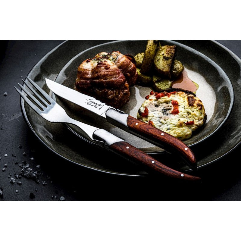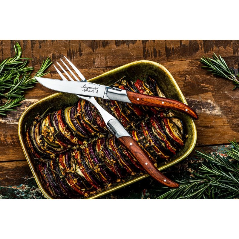 Su šiuo 6 dalių šakutės rinkiniu "Pakka Rose" iš "Laguiole Style de Vie" prabangiosios linijos galėsite mėgautis puikia vakariene. Šakutės yra 2,5 mm storio ir jų negalima plauti indaplovėje. Kiekvienas rinkinys pateikiamas gražioje juodoje dėžutėje. 6 dalių "Luxury Line" šakutės taip pat gali būti įvairių kitų spalvų ir medžiagų.