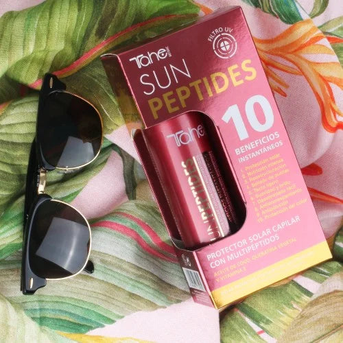 „Sun Peptides“ – tai specialiai sukurtas plaukų apsauginis purškiklis nuo UV spindulių, skirtas apsaugoti ir puoselėti plaukus, veikiamus saulės spindulių ir laisvųjų radikalų. Jo daugiafunkcė formulė sujungia stipriuosius multipėptidus, kokosų aliejų, augalinę keratiną ir vitaminą E, kad suteiktų visapusišką apsaugą ir intensyvų drėkinimą.