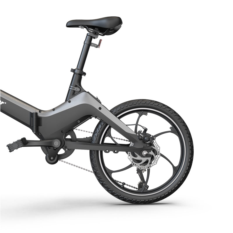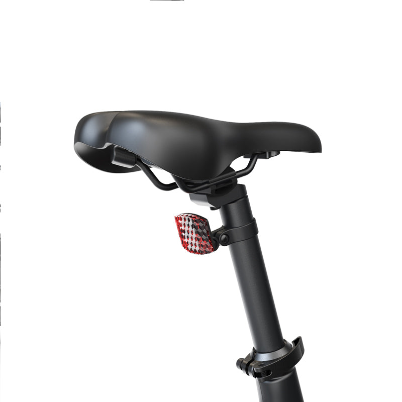 Elektrinis dviratis turi žibintus, kurie padės jaustis saugiai kelionėse tamsiuoju paros metu arba esant prastam matomumui. Žibintus lengvai įjungsite mygtuku.